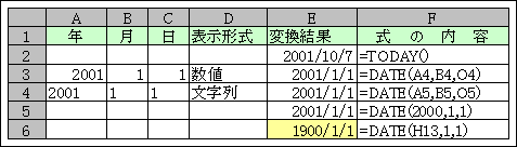 は、年・月・日入力欄のセルを参照(入力データが数値でも、数値を表す文字列でも結果は正