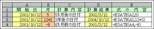 EDATE | 指定された月数だけ前または後の日付に対応する日付を表す数値を算出(書式指定により日付表示形式に変換) |