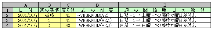 書 式 | WEEKNUM(シリアル値,週の基準) |