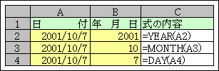書 式 | YEAR(シリアル値) MONTH(シリアル値) DAY(シリアル値) |