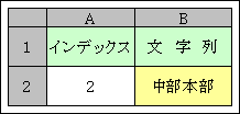 説 明 | 文字列 取り出す文字を含む文字列を指定する。目的の文字列が入力されたセル参照を指定することもできる。 開始位置 文字列 から取り出す先頭文字の位置 (文字番号) を数値で指定する。文字列 の先頭文字の位置が 1 になる。 MIDBの場合は、文字の位置(文字番号)をバイト単位で指定する。 文字数 取り出す文字数を指定する。 バイト数 取り出すバイト数を指定する。 |