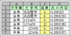機 能 | LEN関数 文字列に含まれる文字数を算出。半角と全角の区別なく 1 文字を 1 として処理する。 LENB関数 文字列に含まれる文字数をバイト数で算出。バイト数 (半角単位) で処理する。 |