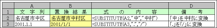 書 式 | SUBSTITUTE(文字列,検索文字列,置換文字列,置換対象) |