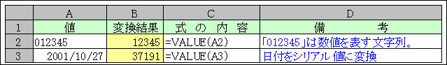 VALUE | 文字列として入力されている数字を数値に変換 |