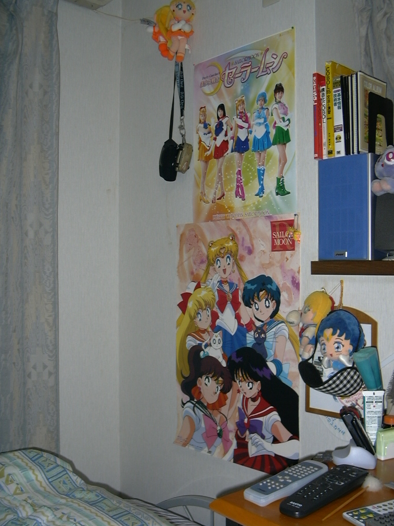 アニメ版と実写版のセラムンポスター(うち実写版はカレンダー表紙をそのまま使用)を飾っています。