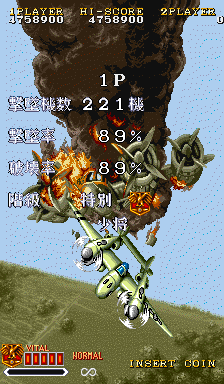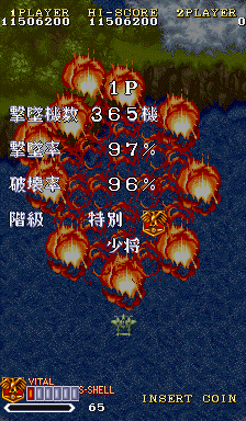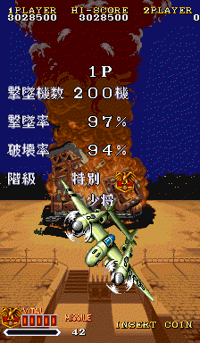 1941カウンターアタック・・・・19シリーズ4作目にあたるこのゲーム。 美しいグラフィックと演出、ゲームバランス、どれをとっても良く出来ており、個人的には縦シューTOP10入りにしています。 ゲームの難易度も良く調整されており、初心者でも少しやればそこそこ先に進む事が出来る、当時の激ムズシューティングが多い中、これは評価できると思います。 ただ悲しいかな近くのゲーセンでは設置される事無く、たまに知らないゲーセンで見つけては、『ちょろっ』とやるだけでした。 その後PCEのスーパーグラフィックに完全移植され、家でやってた記憶があります。