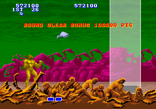 獣王記・・・・このゲーム近所のゲーセンにはなく、PCEでしかやったことがなかった。 しかもソフトのメディアがCD−ROMで、ゲームの途中で読み込みを始めるといったとんでもないものだった。 肝心のゲーム性といえば、昔のゲームによくある操作性の悪さで、ゲーム自体もあまり面白いものではなかった。 ただ出てくるキャラのセンスがよく、個人的には少しお気に入りである。