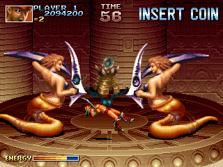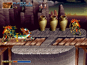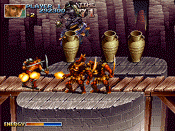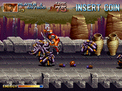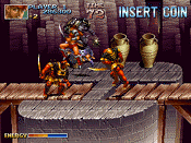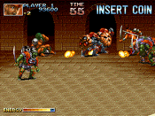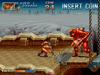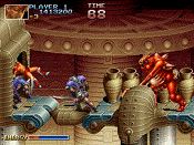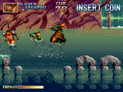 クロスブレイス・・・・アイレムらしく書き込まれたグラフィックに演出、個性豊かなキャラといい見ているだけでも楽しいゲームだが、1つだけ問題がある。 それは爽快感が少ないこと・・・・、剣でどんどん敵を薙倒して進んでいくのではなく、ちびりちびりと倒していく。 このタイプのゲームなら、やはりカ○コンの方が1枚も2枚も上手のような気がする。 ただ、こういったマニアックともいえるゲームバランスが、アイレムらしいともいえるが・・・。
