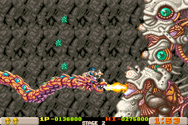 ドラゴンブリード・・・・アイレムらしくどろどろしたグラフィックとサウンド、そしてこの世界観が個人的に気に入っています。 ドラゴンの使い方がポイントで、それさえ上手く使えれば楽に進む事が出来ます。 慣れが必要だがそれさえクリアーすれば、ゲームの難易度はあまり高くないかも・・・。