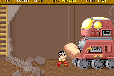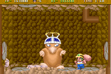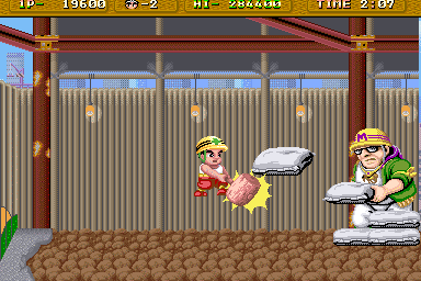 大工の源さん・・・・パチンコでおなじみの源さんシリーズのオリジナル。 パチンコの源さんを知ってても、ゲームを知っている人はあまりいないはず。 ゲーセンでも設置されているところは少なく(あくまで自分のまわりの話だが・・)はじめて見つけたのは、昼休みにランチを食べに行く喫茶店だった。 食後のコーヒーを飲んでいる時に1プレイだけするのが日課のようになっていた。 しかし暇つぶしにやっていたので、さほど思い入れもなくやりこむこともなかった。(そこの喫茶店は24時間営業でゲームもつけっぱなしで、画面が緑色だったし・・。) この続編がSFCで出ているが、内容はイマイチだった。 名作とは呼べないが、パチンコ業界には貢献した作品だろう。