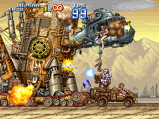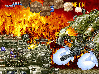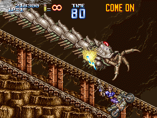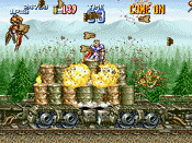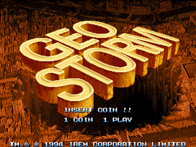 ジオストーム・・・・『ガンフォース』の続編にあたるこの作品だが、前作をはるかに上回る爽快感、緻密なグラフィックだが、残念なことに近所のゲーセンには置いてなく、ゲーセンでは1度もプレイした事がない。 でもこのグラフィックを見るかぎり、『メタスラ』の母体になっていることは間違いないだろう。 ゲームの難易度は高め。