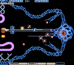 グラディウス・・・・コナミの看板ソフトの1つ。 当時そのグラフィックと演出、パワーアップシステム(とくにオプションの存在)とよく出来ており、話題を呼んだ。 また無限ループによるスコアーアタックなどで盛り上がっていた。(俺には関係なかったが・・・) またいろんな機種のも移植され、最新は携帯電話のゲームにもなっている。(持ってます(^^) これまでにいろんな機種に移植されたこのグラディウス、やはりそれはそのシステムが良くできている証拠だろう。