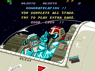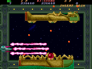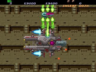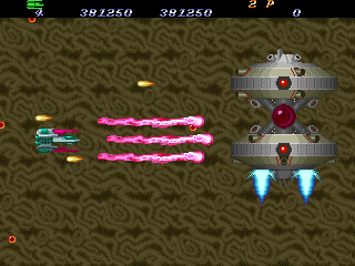 ヘルファイヤー・・・・東亜プランの中でも異色的なシューティングといえるこの作品。 自機のショット方向を切り替えながら進んでいく・・・その為、敵の配置や出現する場所がいやらしく、自分なりのパターンを作らなければクリアは無理なゲームでした。 はじめてゲーセンでやったときは、ショットの切り替えになじめず、2回ほどプレイしてやめました。 それからはゲーセンですることなく、PCエンジンに移植され買ってやってたものの、やりこむことはありませんでした。 あぁ・・・、東亜プランよ、もう一度・・・。