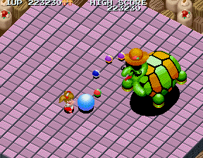 メルヘンメイズ・・・・このゲームはゲーセンにはあったが、1度もプレイしたことなく初めてやったのはPCEでした。 その時移植は縦スクロールゲームだったが、それでも難易度は高かった。 しかしアーケードは斜めスクロールのうえ難易度が高く、初めてやった人は1面クリアーも危ういかも。 見た目と難易度のギャップが古き良きレゲ―(レトロゲーム)の香りがする。