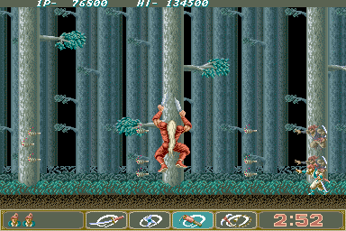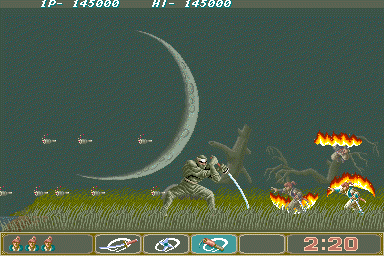 最後の忍道・・・・このゲーム、実ははじめてやったのはPCEだった(ゲームショウで)。 それからもゲーセンでやることのなく、PCEの発売日1日前に買い自宅でやっていた。 最終面までクリアーできるようになり、少し離れのレトロのゲーセン屋(1プレイ50円)でやってみると、ほぼ完璧に近い移植だったので、はじめからかなり先に進んだ記憶がある。 ただその時に思ったことは、やはりアーケードのグラフィックの美しさ。 PCEでもかなり良かったが、こちらを見るとその差が歴然とし、マシンスペックの差を感じていた。 やはりアーケードがいい。