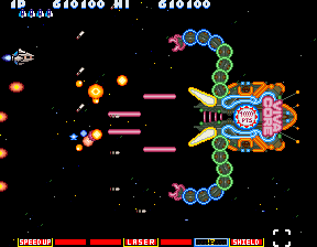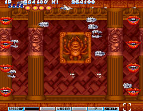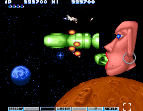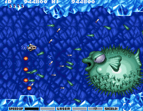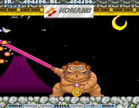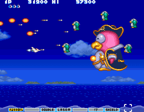 パロディウスだ!・・・・タイトルどうりグラディウスのパロディ版。 しかし見かけと難易度のギャップが激しく、楽しみながらプレイできるのは中盤前半ぐらいまで。 中盤も後半になるとグラディウスの血を引き継いでいるごとく、かなりの敵弾が向かってくる。 もう少し難易度は見た目どうりに下げて欲しかった。 後ゲーム内容だが、キャラを変えているだけで中身はグラディウスに近いんで、さほど目新しさは無い。