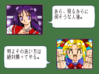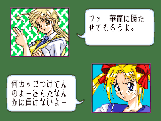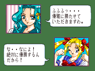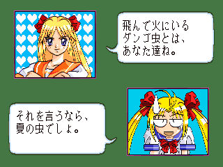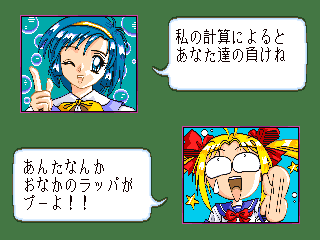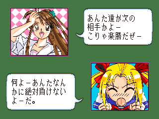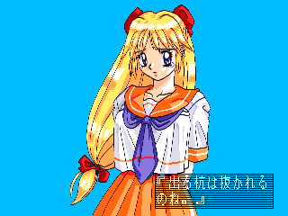 美少女雀士プリティセーラー18禁・・・・某アニメーションキャラをパクッた麻雀ゲーム。 特に取り立てて目新しいところは無いが、ミニゲームが意外といけた。 ただの間違い探しゲームだが、後のゲーム展開を楽にするために、真剣にやっている自分がいた。(^^; 後余談だがこのゲームをやってるときに、子供がきて『あっ、セー○ームーン』『ビー○ス』『マ○ズだ』とかいって、中々向こうに行ってくれなかった。 今から脱衣が始まるというのに・・・・。(^^;