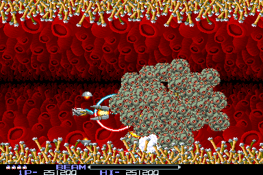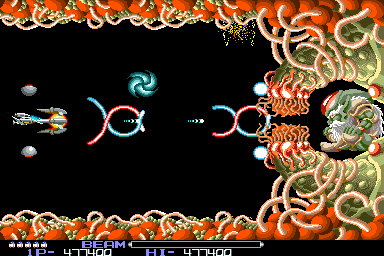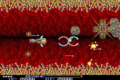 R・TYPE・・・・アイレムの代表作ともいえる作品。このゲーム、初めてゲーセンでプレイした時はボロボロで、1面すらクリアーできなかった。それでもこのはじめてみる世界観とグラフィック、どうしても先が見たく、100円玉を積み上げてプレイしました。しかし何度コンティニューしても6ステージまでが限界に近かった。それでも金にものを言わして何とか7ステージまで言ったが、それ以降はどうしてもクリアーできなかった。それから7ステージもボスを見ることなく月日は流れたが、あるときPCエンジンというゲームでこのゲームが移植される事を知った。しかも当時ファミコンが全盛の時代に、遜色ない移植がされてるという事で、社会人としては当然買うしかなかった。しかし問題もあった。前・後編と分かれて出すため、7ステージをクリアーするには後半を待たなければならなかった。そして発売1日前に購入し、とことんやりこんだ。そして最終ボスをクリアーできるようになった頃には、近所のゲーセンには撤去されていた・・・(ToT)。