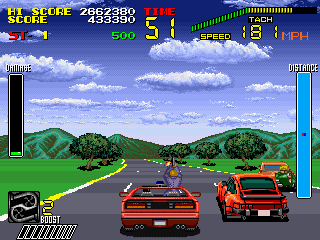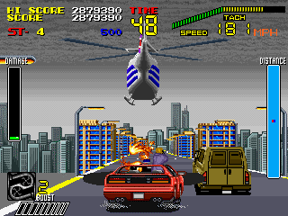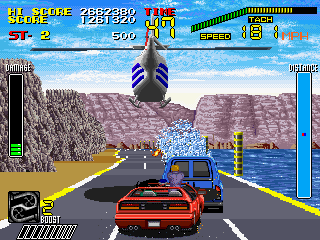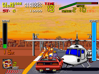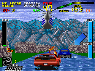 S.C.I・・・・このゲームはゲーセンでは数回(正確には1回)しかやったことがなくあまり語ることは出来ないが、個人的にはレースゲームとしてはイマイチだしシューティングとしてもイマイチで、どっちつかずな感じがする。 このてのレースゲームでは『アウトラン』(セガ)のほうが全然よく出来てるし、シューティングは『ナイトストライカー』(タイトー)のほうがよく出来ているし・・・。 う〜む、やってたら楽しかったし結構この中途半端なできがいいのかも・・・。