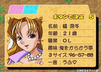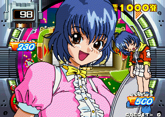 パチンコセクシーリアクション・・・・ゲームとはいえないこのゲーム。 ほとんどゲーム中やることなく、ただ見ているだけでいい。 しかもパチンコ台は液晶搭載機が一台も無く、中ボス、ラスボスではドンドン時代をさかのぼったような機種が出てくる。 またパチンコ玉の動きも少しおかしい気が・・・。 否定的なコメントばかり書いてしまったが、個人的にはやってて疲れなかったんで、お気に入り。 しかもここの登場してくるキャラクター達がよく動き、見ていて楽しかった。 後余談だが、このページを作るために撮ったショットは950枚を超えてしまった。(ホントキャラ動きすぎ・・・。)