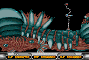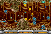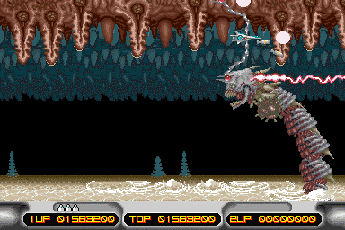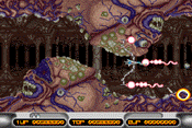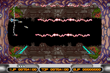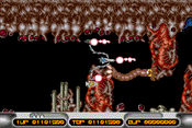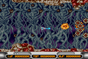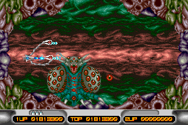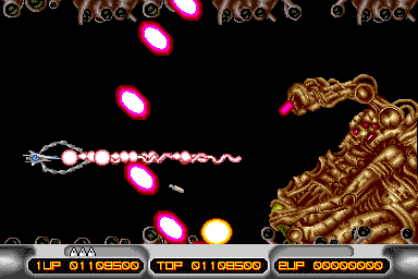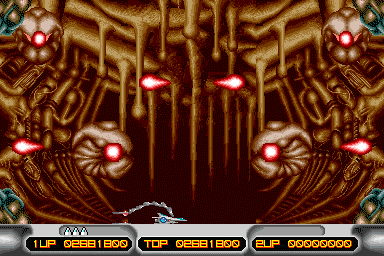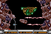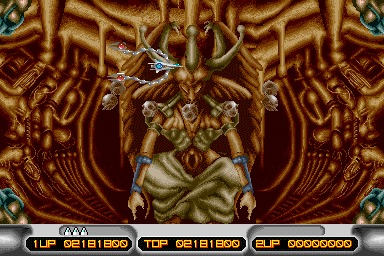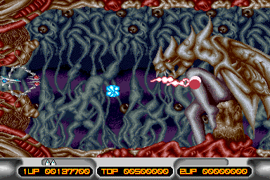 エックスマルチプライ・・・・アイレムらしく独特のグラフィック、人間の体内を進む設定(と聞いたことがある)だが、どう見てもみんなエイリアンだし(エンディングのボス紹介でもエイリアンと出てたし)・・・。 そして画面から見受けられるように、全体的に地味なゲームになっている。 近くのゲーセンでも設置されていたが、いつ見てもハイスコア−にネームエントリーがなく、俺だけが入れていた。 自機に触手みたいのがつき(名前忘れた)、それを上手く使えるかどうかで難易度がかなり変わる、かなり慣れがいるゲームだった。 個人的には隠れた名作(迷作)だと思っている。