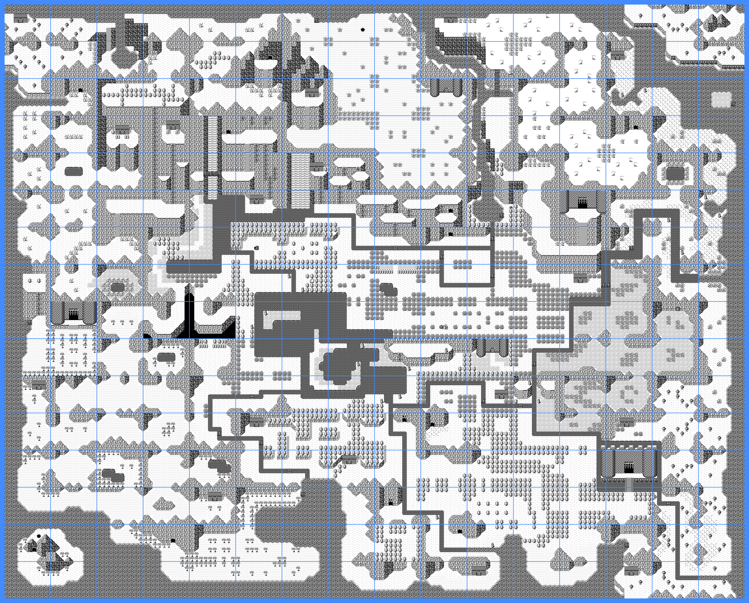 ゲーム上では1画面スクロール方式なのでFFやDQのマップとは違い画面構成がやや適当になってます。ゲームをプレイする上では気になりませんがこうやって全体マップ化してみると・・・。