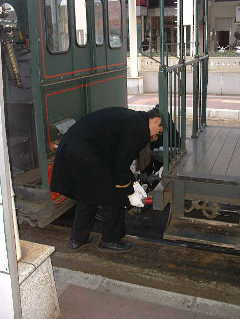 車庫のある古町から到着した新生「坊ちゃん列車」。