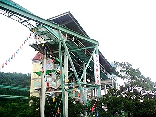 行ったのは梅雨時。 従って普段よりお客さんは少な目でした。 かえって恥ずかしくなくて(?)この時期は いいかもしれません。 私にはあまり関係ない事ですが。 レールは終点でループを描いており、 ある意味壮観な眺めです。 バックに見えるのは「スカイタワー」です。 |