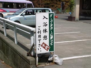 群馬バスの終点から少し上がった所。 こんな看板がありました。 宿泊以外の人の利用もできるようです。 行ってみましょう。 |