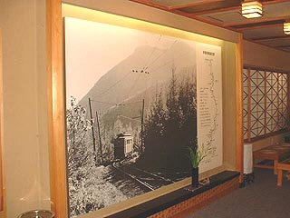 これはフロントにあるパネル。 昔の伊香保電車の紹介です。 木造の4輪単車で、下り坂ではポールを下ろし、 ハンドブレーキだけで下ったそうです。 すごい登山電車もあったものです。 |