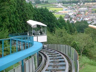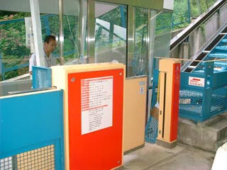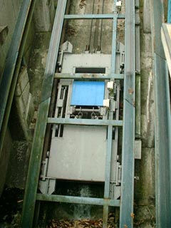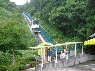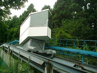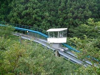 ずいぶんと立派な碑を作ったでござるな。 片道大人150円でござる。 ううむ、エレベータにしては高いとみるか、 ケーブルカーにしては安いとみるか、 悩むところでござる。 |