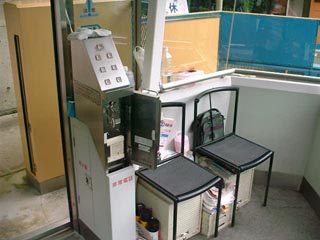 これがエレベータの本体。 今降りてきた所でござる。 左右非対称でござる。 |
