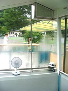 中には冷房も完備されていたでござる。 しかし窓が曇っているでござる(笑)。 鉄兜まであるのは戦に備えての事でござろうか? |