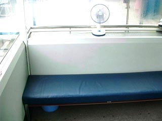 これが座席でござる。 固定座席と思ったでござるが、ただの長椅子だった でござる。 ううむ、拙者の目をごまかすとは・・・ |