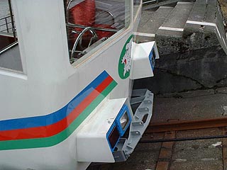 これがポイント。 話に聞いたとおり可動部がありましぇん。 しかもケーブルが通るため、形は複雑。 これからいよいよ勾配30°区間にはいります。 |
