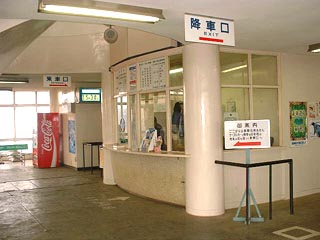 ここが出札口(兼改札口)です。 いろいろとグッズ(?)も売っていたような・・・ 時計を見ると、前の便が本当に行ったばかり なのがわかりますね(笑) |