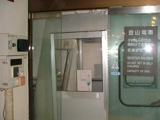 車両がいない時(つまり運転中)は このようになっています(山上駅)。 インターホンで連絡も取れるようです。 |