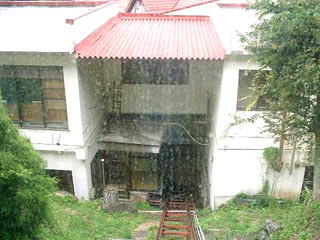 山下駅。 すなわち旅館のロビー側を車内から。 ちゃんと上には屋根が付いています。 |