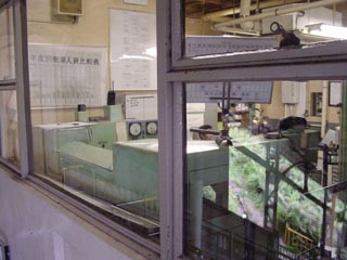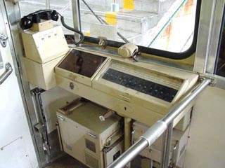 山上側の乗員席。 パネルにはスイッチ類が並んでいます。 ワイパーも装備。 連絡は黒電話で行うようです。 |