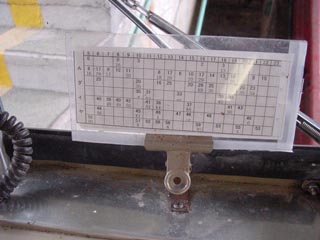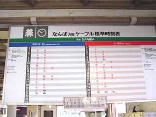 運行表がさしてありました。 上で生活する人のためか、かなり遅くまで 便があるようです。 |
