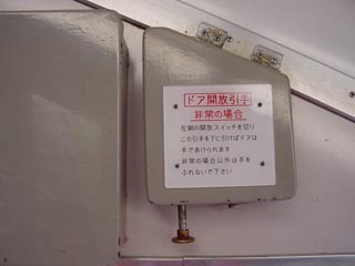 ドアの手動解放用スイッチ。 非常用にこのような装備もされています。 できればあまり使いたくないですね。 |