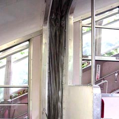 車内を上から見下ろした所。 かなり広いですが、それでも観光シーズンには 大変な混雑になるようです。 箱根も同じだなあ。 |