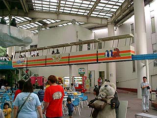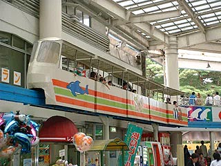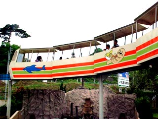 今回の物件ですが、ほとんど屋内を走ります。 そういう意味では貴重な物でしょう。 前面は二枚窓、オープン構造の車体、 もろ遊戯施設ではありますが、 仕組みはモノレールそのものです。 |