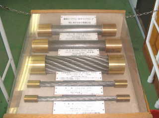 その下が支索緊張索、支索を張るのに滑車を通して重りで引くのですが、