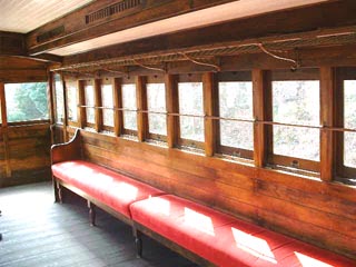 客車の内部です。 実は新製ではなく、現役だった車両の復元。 本当は明治の始めの頃は クッションは上等車にしかなかったようです。 ここの列車の感じは明治中頃から戦前という イメージでしょうか? なんか幹線というより田舎の列車みたい。 |