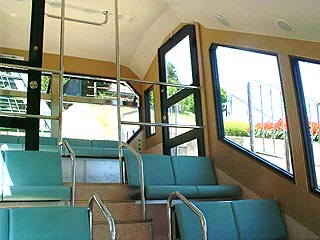 山下駅でのケーブルカーの様子。 半ば地面に埋まっています。 先にも言ったようにドアが上にあるために こうなってしまうのです。 |