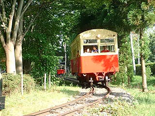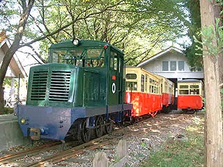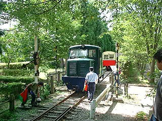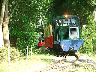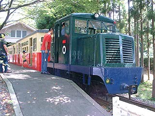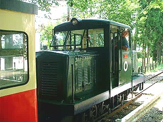 DC121の引く列車。 カーブを曲がり、「なかよしの森」に向かいます。 |