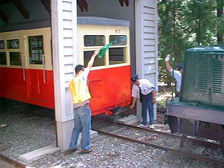 出発前の一こま。 この4両がこの鉄道の全所属車両なのです。 |
