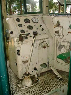DC121の運転台。 今まで見てきたような小型機と違い、 計器類も普通の機関車と変わりません。 |