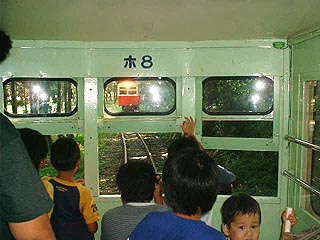 一日の運行が終わり、 車庫にしまうための入れ替えが行われました。 |